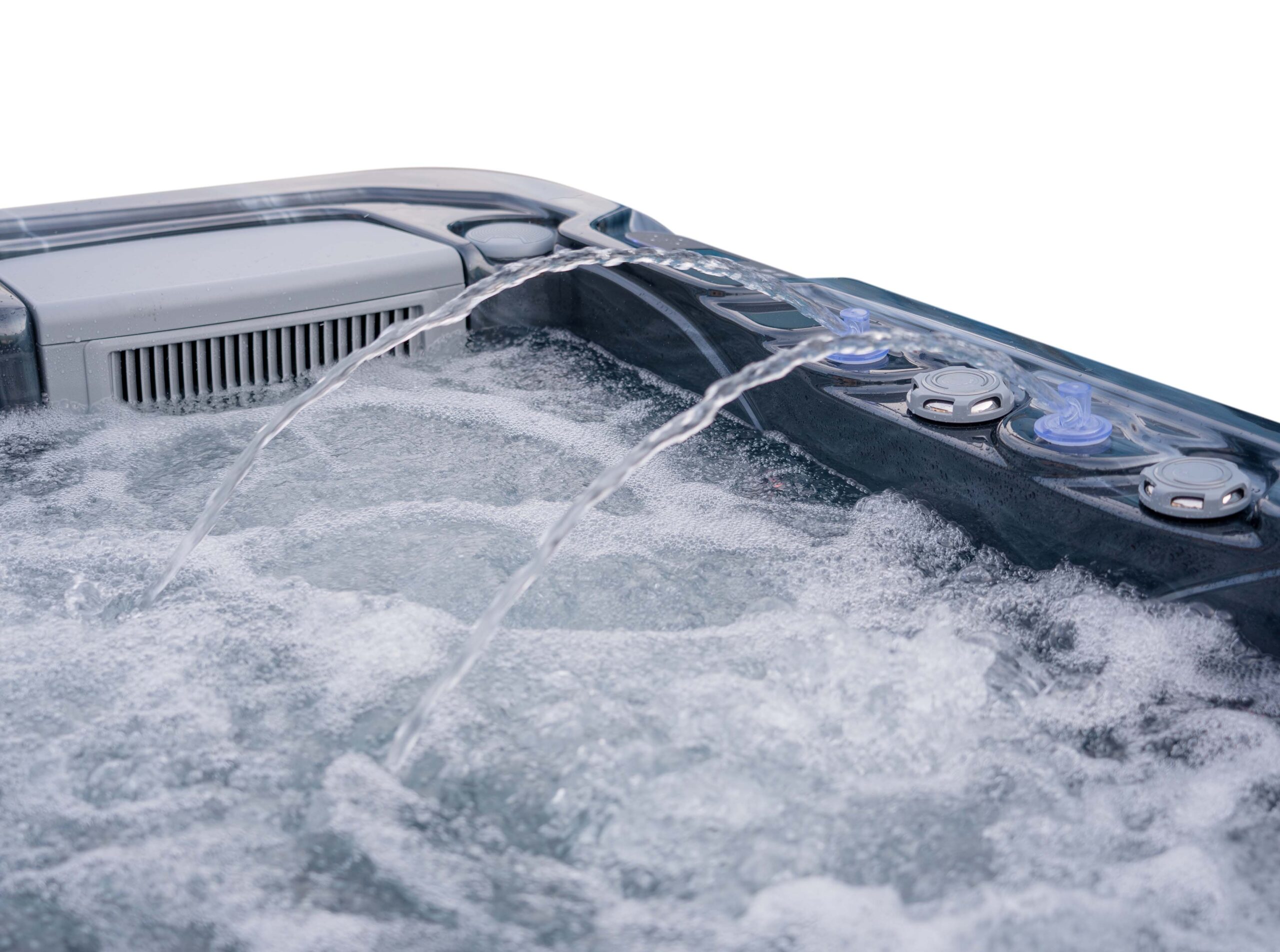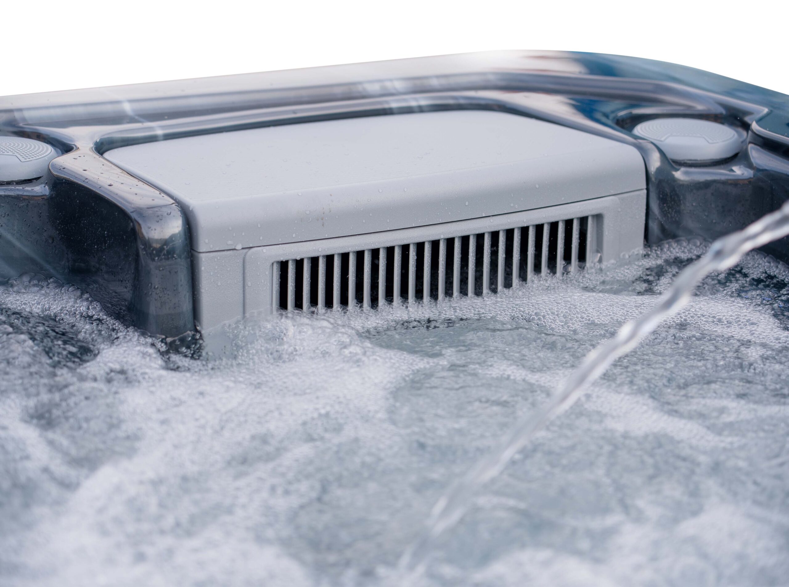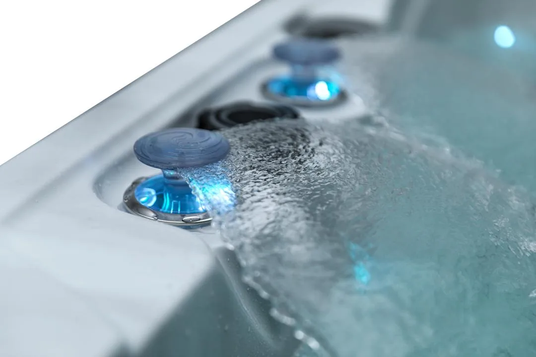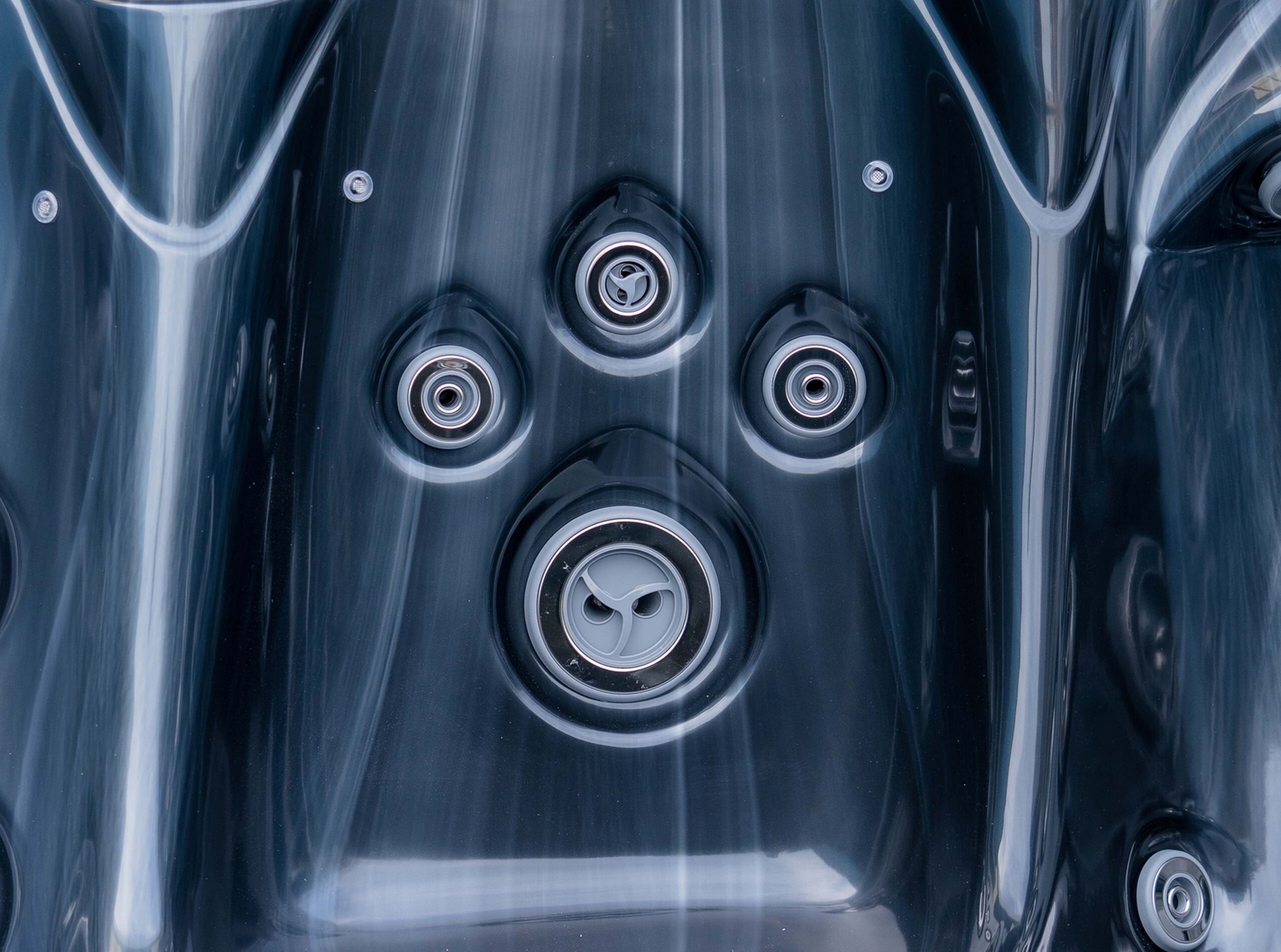 This hot tub includes air blowers – dedicated fans that push air through tiny ports around the seats. Instead of blasting water like hydro jets, they send air only, creating a gentle, fizzy “champagne bubble” sensation that lifts the body and helps you unwind. It’s perfect for a relaxed, social soak or for softening the muscles before you turn the hydro jets up for a deeper massage.