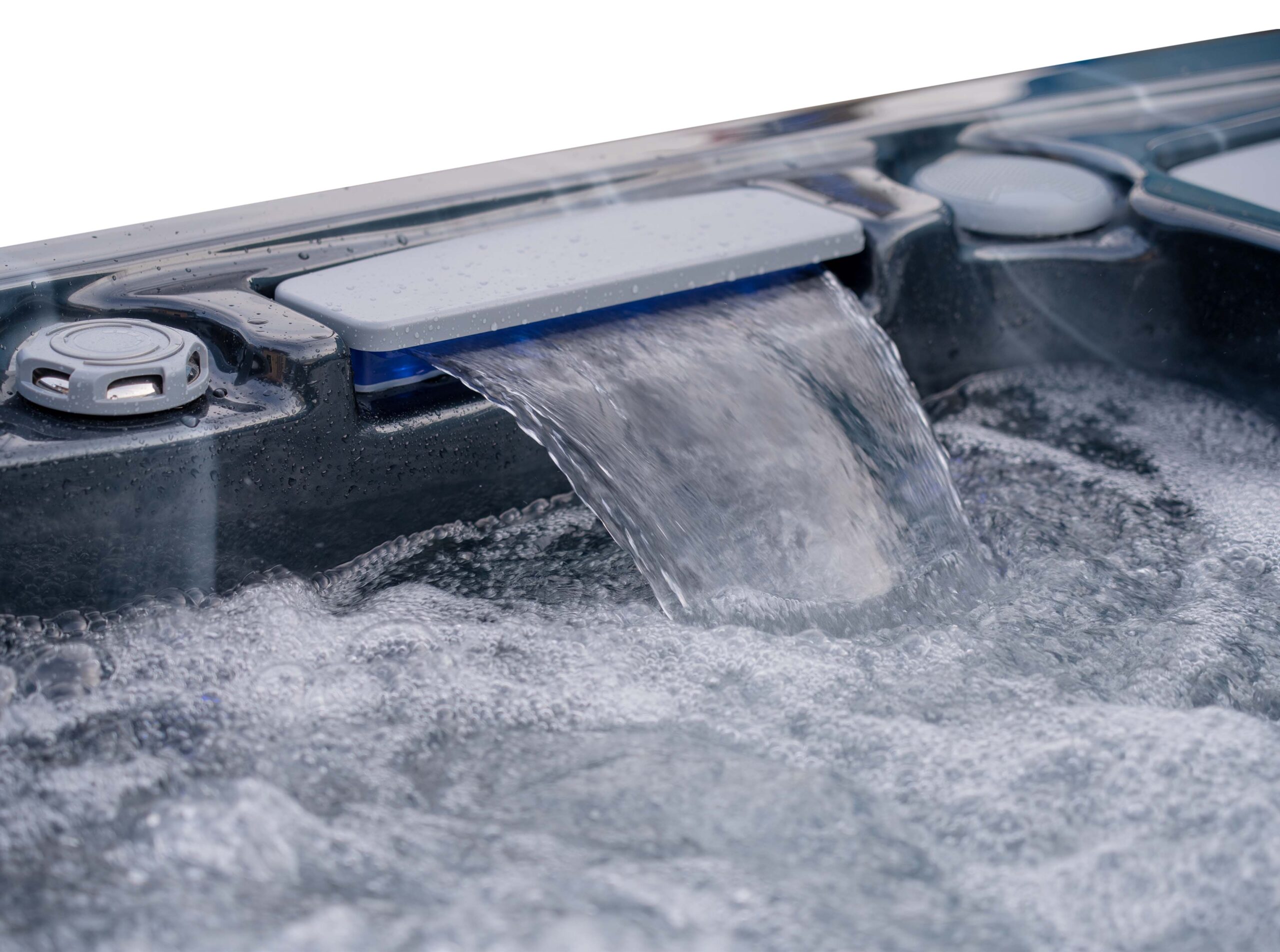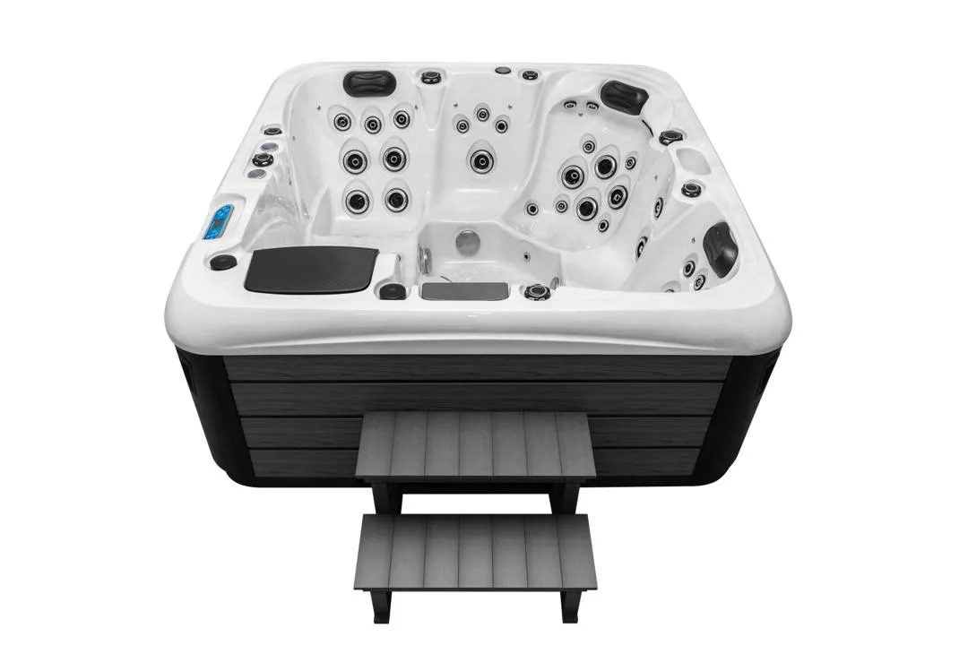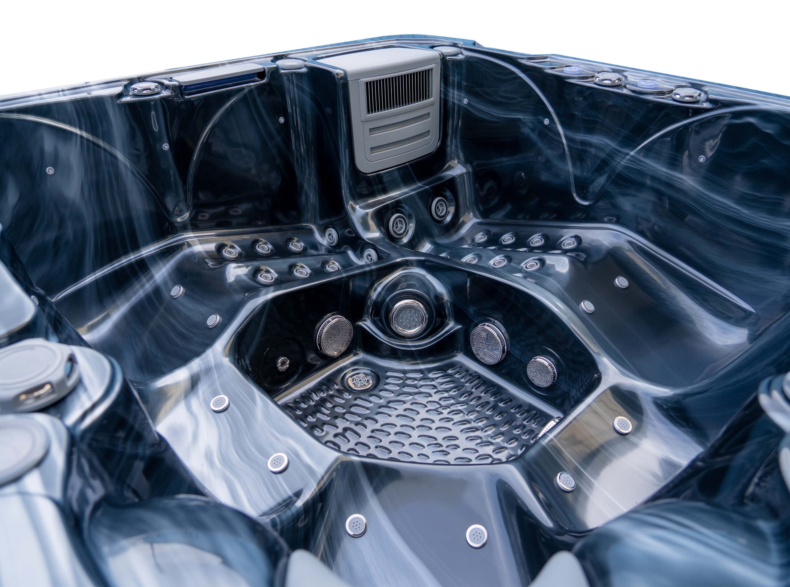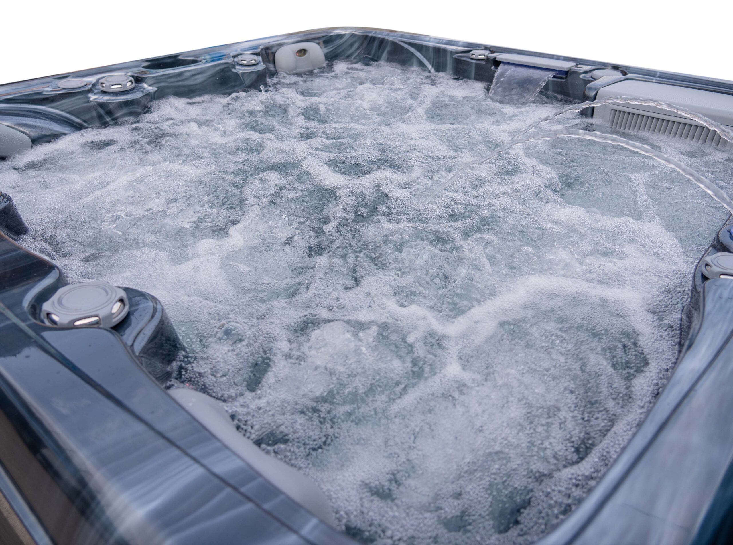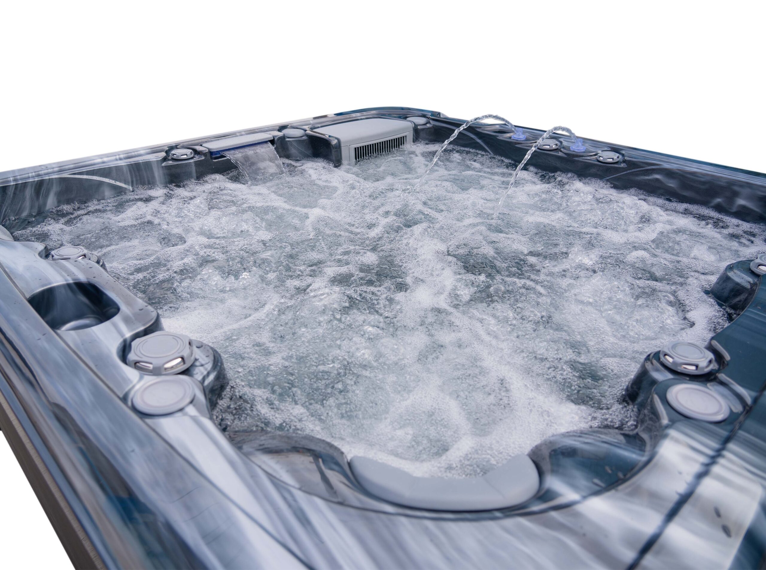 This hot tub includes air blowers – dedicated fans that push air through tiny ports around the seats. Instead of blasting water like hydro jets, they send air only, creating a gentle, fizzy “champagne bubble” sensation that lifts the body and helps you unwind. It’s perfect for a relaxed, social soak or for softening the muscles before you turn the hydro jets up for a deeper massage.