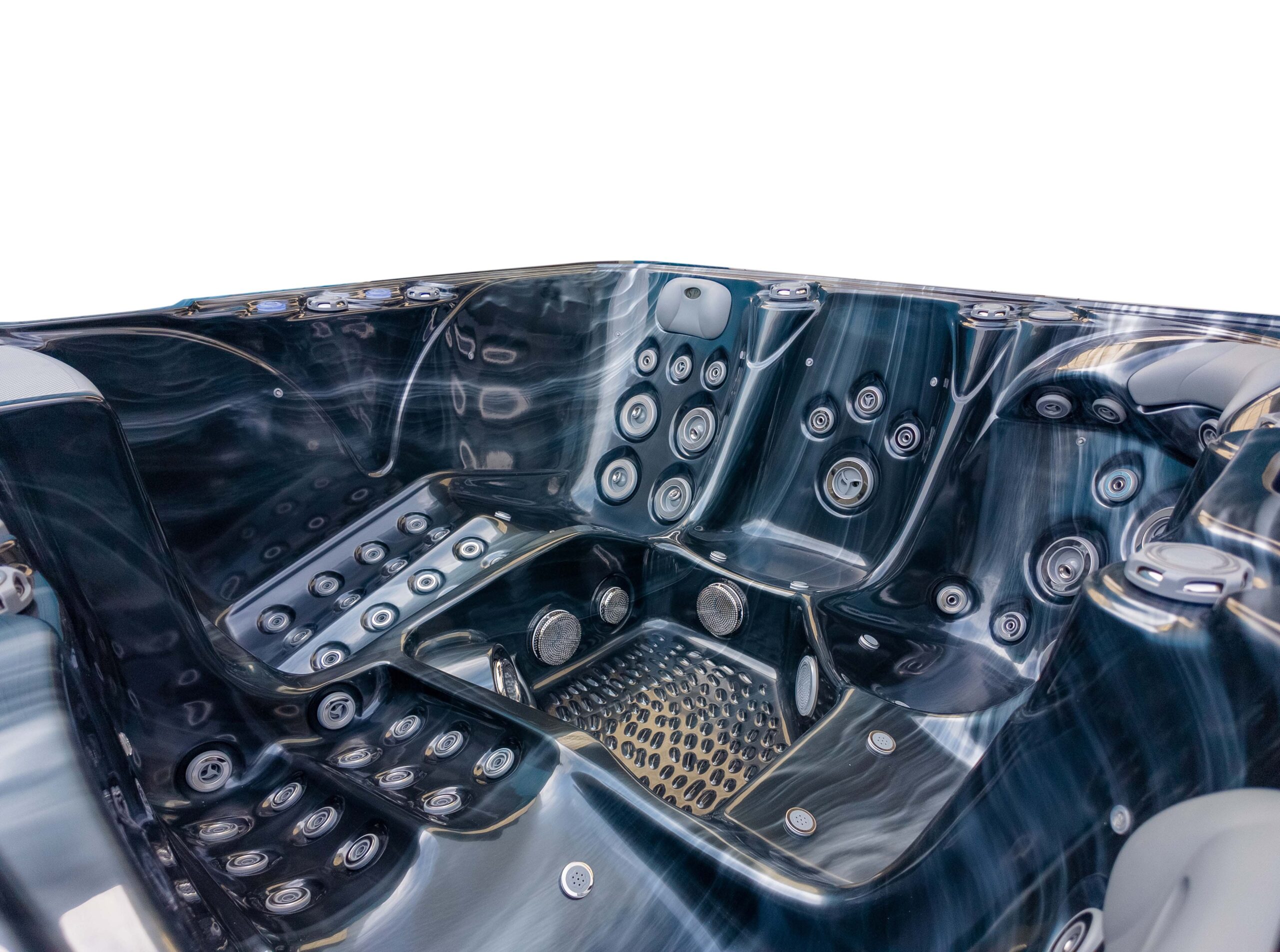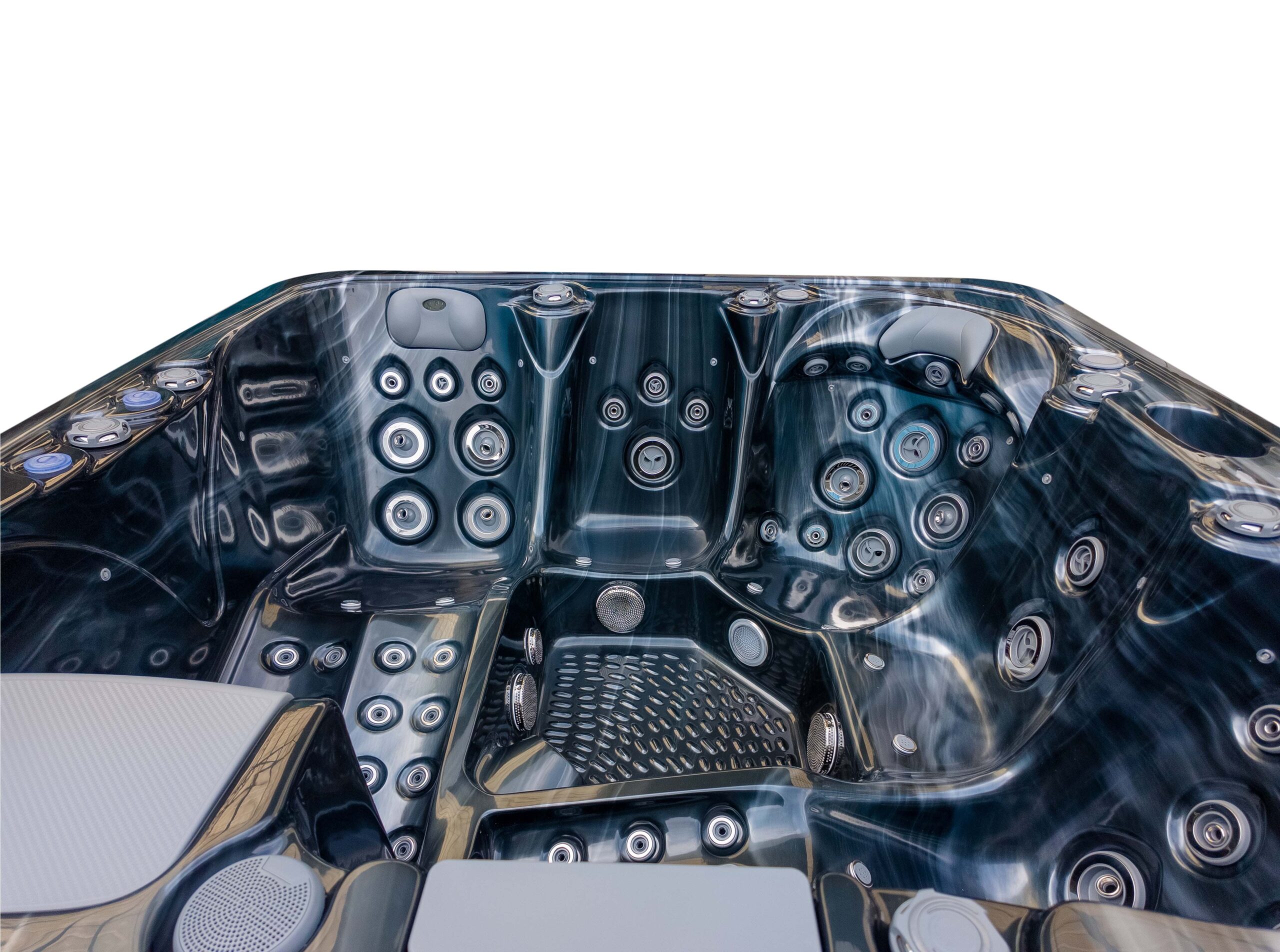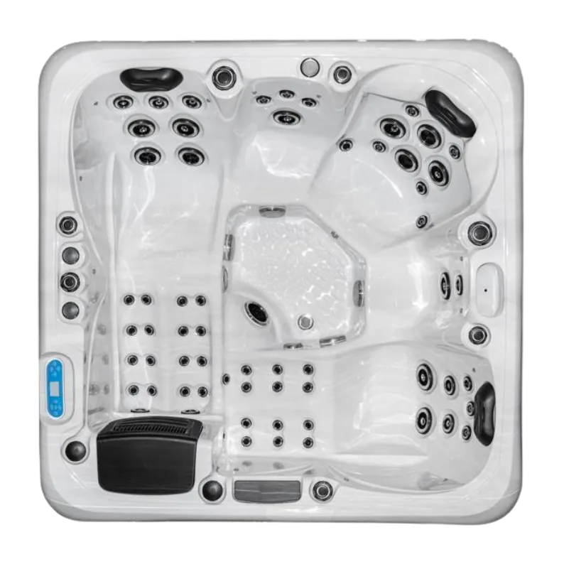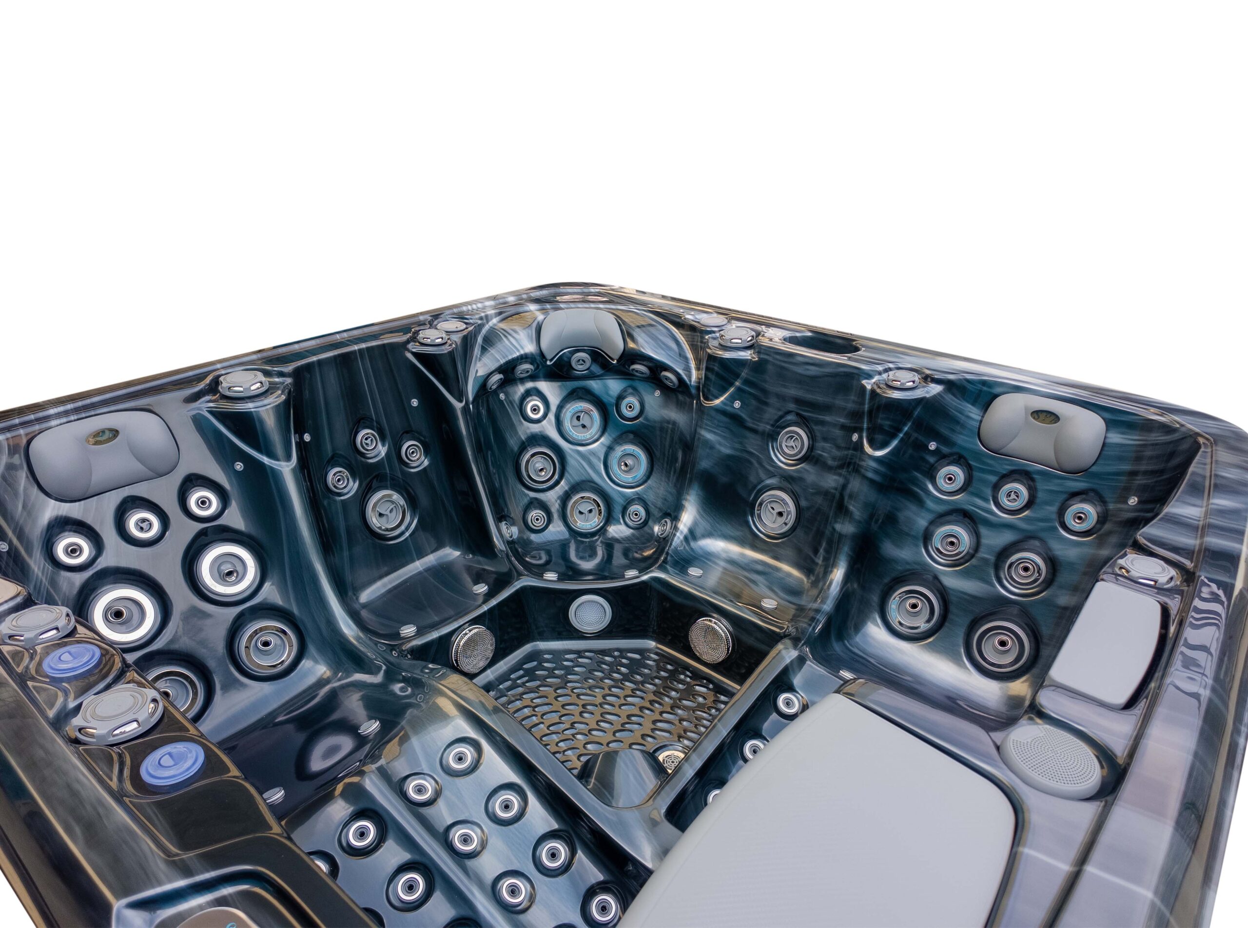 This hot tub includes air blowers – dedicated fans that push air through tiny ports around the seats. Instead of blasting water like hydro jets, they send air only, creating a gentle, fizzy “champagne bubble” sensation that lifts the body and helps you unwind. It’s perfect for a relaxed, social soak or for softening the muscles before you turn the hydro jets up for a deeper massage.