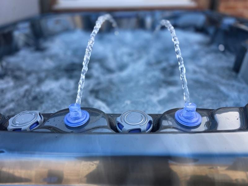 This hot tub includes air blowers – dedicated fans that push air through tiny ports around the seats. Instead of blasting water like hydro jets, they send air only, creating a gentle, fizzy “champagne bubble” sensation that lifts the body and helps you unwind. It’s perfect for a relaxed, social soak or for softening the muscles before you turn the hydro jets up for a deeper massage.