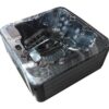 The RokuThree is a premium hot tub engineered for six users, featuring one lounger and five seats for a versatile hydromassage experience. Measuring 2100mm x 2100mm x 910mm and holding up to 1160 litres of water, it incorporates 59 light-up jets, combining various static, directional, and rotational types, along with air jets for a deeply therapeutic soak. The elegant design is elevated by two LED fountains, a waterfall, and a built-in ice bucket, all set within a durable USA Aristech Acrylic shell.